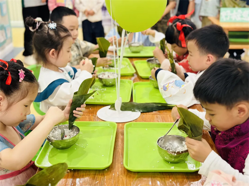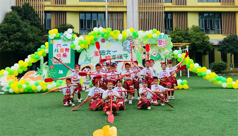 在端午佳节之际,都江堰市天天幼儿园践行“幸福天地, 快乐童年”的园本课程理念,将传统节日与园本课程相结合,开展了以“端午龙舟宴·天天吃大席”为主题的端午节庆祝活动。通过划旱地龙舟、挂艾草、包粽子等端午民俗体验,让幼儿感知传统节日的文化内涵。以“龙舟宴”为载体,融合多领域活动,理解饮食与生活的关联,满足幼儿多元兴趣与习惯养成需求。