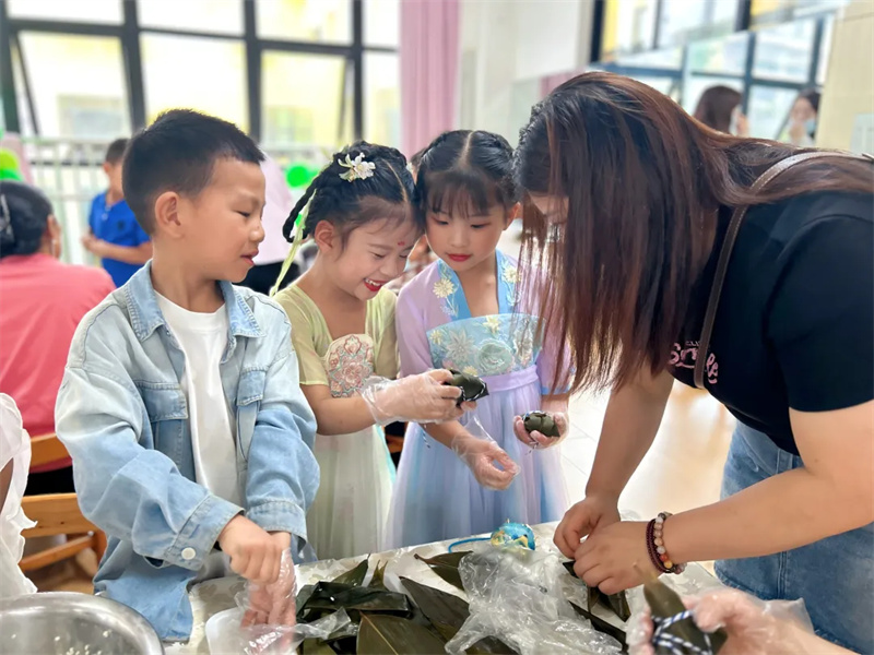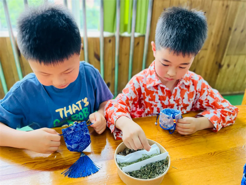 “六一”邂逅端午,都江堰市胥家幼儿园为孩子们打造了一场欢乐与传统交融的亲子趣味活动。大家围坐在一起,包粽子、做香囊,稚嫩的小手将糯米、馅料裹进粽叶,轻轻将艾草装进香囊。一个个粽子、香囊满载着节日的喜悦与传统文化的韵味,让孩子们在动手实践中感受双节魅力。