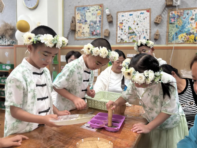 为了让孩子们在节日里有满满的快乐体验,都江堰市金沐禾融创幼儿园从儿童视角开展“有点意思·六一魔法会”系列主题活动,将中国传统文化浸润其中,孩子们亲身体验包粽子、做艾草花、美妆彩绘、编五彩绳、划龙舟、套圈、考古等,感受文化的多元,游戏的乐趣,也感受到了节日的仪式感和爱。