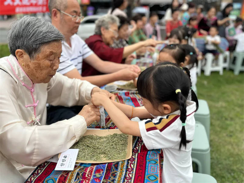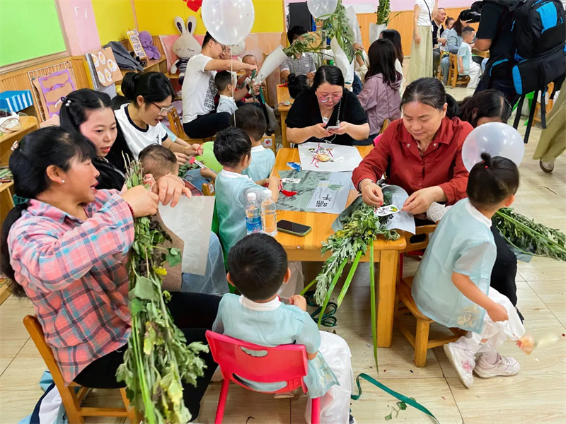 在这个清风和畅的日子里,都江堰市王家桥幼儿园的园子里飘着艾草的清香,荡着五彩丝线的流光。童心与古韵交织,幼儿园以“萌娃嬉园趣,端阳艾韵长”为主题,将儿童节的欢腾与端午节的悠远融合。小朋友和家长们化身“草药师”,将菖蒲、艾草制作成美丽的花束、香囊;在园子里品尝都江堰本地美食;在游园游戏中,将欢乐尽情挥洒。孩子们在活动中收获满满的节日仪式感。