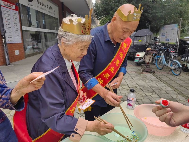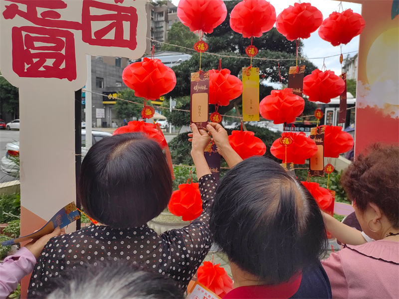 活动现场热闹而温馨。孩子们身着统一服饰,手持红旗,用稚嫩却充满热忱的表演为活动开场,童声里满是对节日的美好祝福。另一边,有的居民在灯谜前驻足思索,感受传统文化的魅力;有的居民在“欢乐投壶”“水中夹珠”等游戏中玩得不亦乐乎,现场欢笑声此起彼伏。创意手工区的沉浸式体验也吸引了不少人参与,大家在动手创作的过程中更好地感受到了节日氛围。