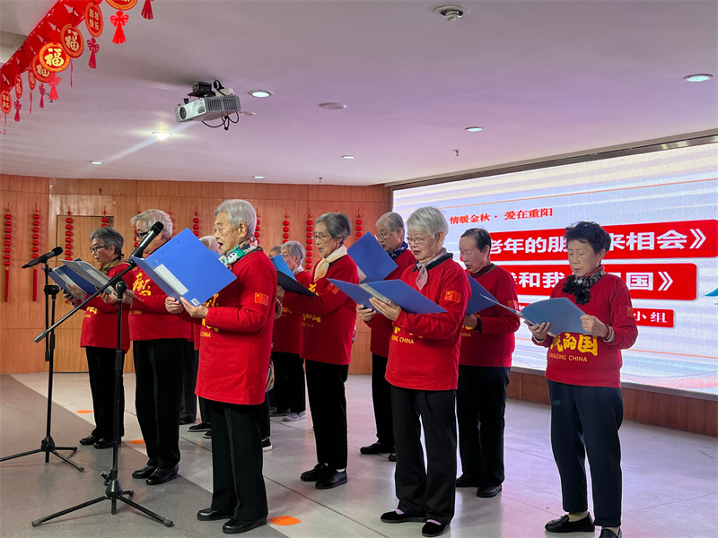 福利院歌韵小组的成员平均年龄超过80岁,却精神矍铄、活力焕发。他们合唱《老年朋友来相会》《我和我的祖国》等歌曲,赢得在场老人的阵阵掌声。