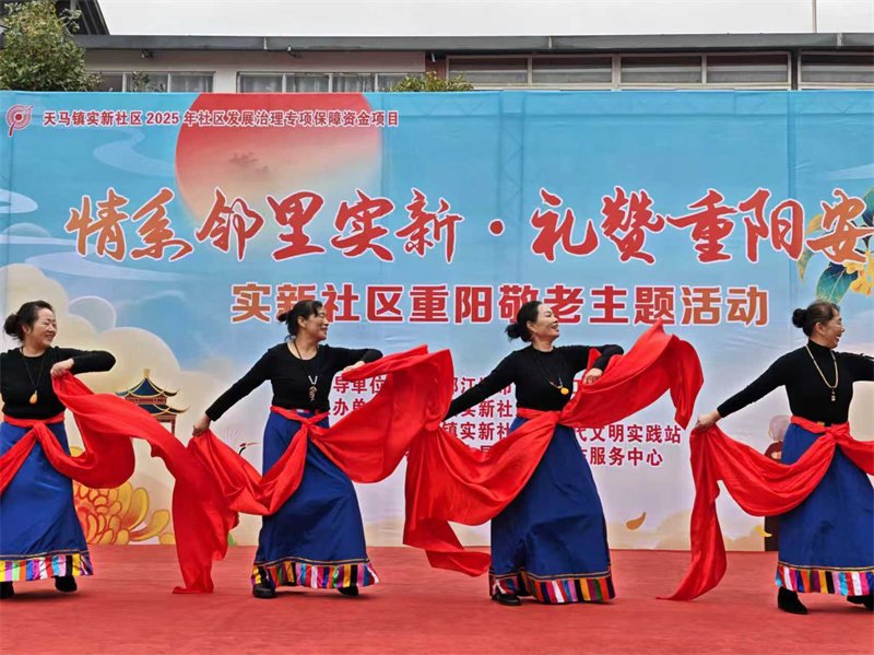 岁岁重阳,今又重阳。为传承“敬老、爱老、助老”传统美德,丰富社区老年人节日生活,10月23日,都江堰市天马镇实新社区举办“情系邻里实新·礼赞重阳安康”重阳敬老主题活动,用精彩演出与暖心家宴,为老年群体送上满满的节日祝福。