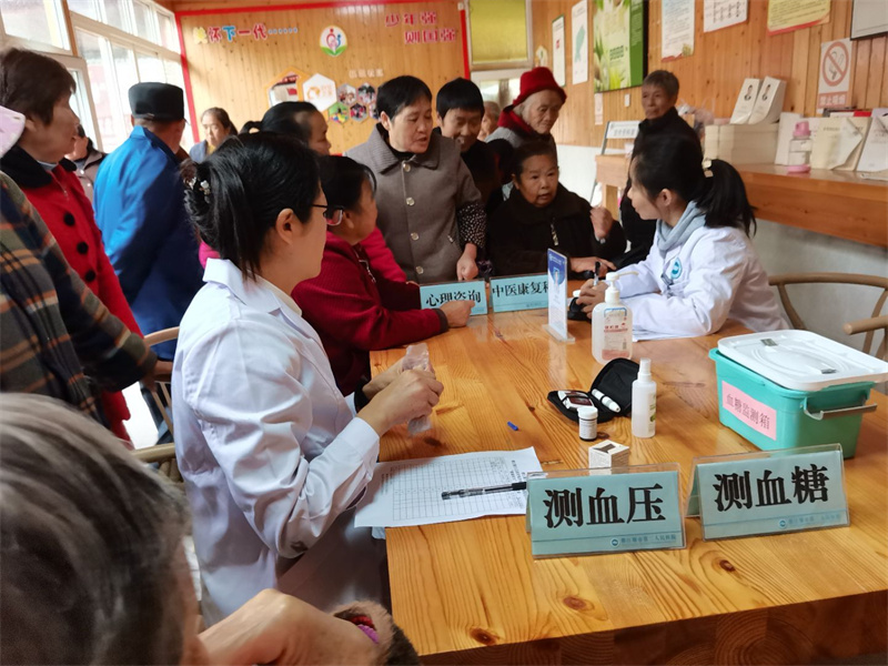 除了健康知识讲解与养生操教学,社区还贴心设置了义诊服务专区。都江堰市第二人民医院的医护人员有序为老人们测量血压、检测血糖,详细记录每一位老人的健康数据,并根据检测结果给出个性化的饮食、用药等方面的建议。针对部分老人提出的睡眠障碍、慢性疼痛等问题,心理咨询师与康复科医生一对一耐心解答,提供专业的健康指导,让老人们在家门口就能享受到优质的医疗服务。