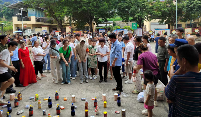 活动现场气氛热烈,掌声欢呼声此起彼伏。古筝合奏《夜空中最亮的星》奏响乡村新声,舞蹈《永远是一家》跳出军民深情,展现了新时代乡村文明新风尚。“乡村振兴”“拥军爱民”知识竞赛活动环节将气氛推向了高潮,大家踊跃抢答,在趣味问答中深化了对共富共美、军民团结等理念的认识,强化了精神共富的思想根基。有奖趣味活动区同样热闹非凡,蔬果套圈、摸石头过河、剥花生、剥玉米等富有乡村特色的项目,让参与者在欢笑中体验农耕乐趣,增进邻里情谊。