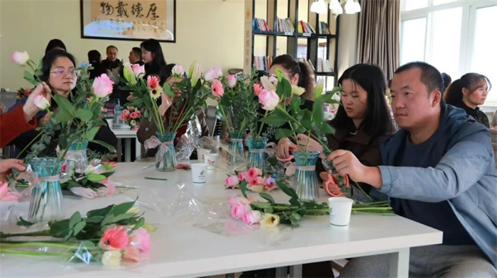 而花艺实操环节为活动注入了别样生机与温情。职工们暂时放下工作的忙碌,化身“花艺设计师”,手持玫瑰等缤纷花束,细心修剪枝叶、精心构思布局,将对生活的热爱与对美好的向往融入指尖创作。
