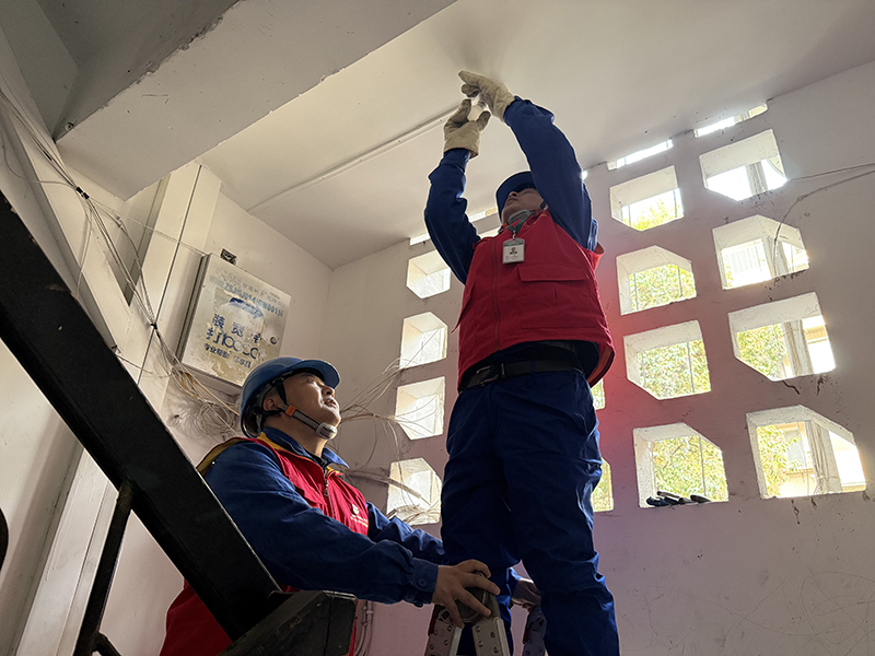 老旧楼道照明紧急抢修现场