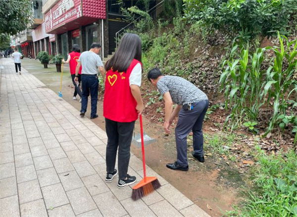 富顺县永年镇多措并举开展党史学习教育,并坚持以深学促实干,切实把学习教育成果转化为践行“我为群众办实事”助推“创文保卫”工作的动力,加强全镇环境卫生治理力度,提高辖区居民的生活质量,打造一个洁净舒适的生活环境。6月26日,永年镇宣传委员唐瑞同志带领全镇干部职工、青年志愿者到永年社区开展“我为群众办实事”活动。