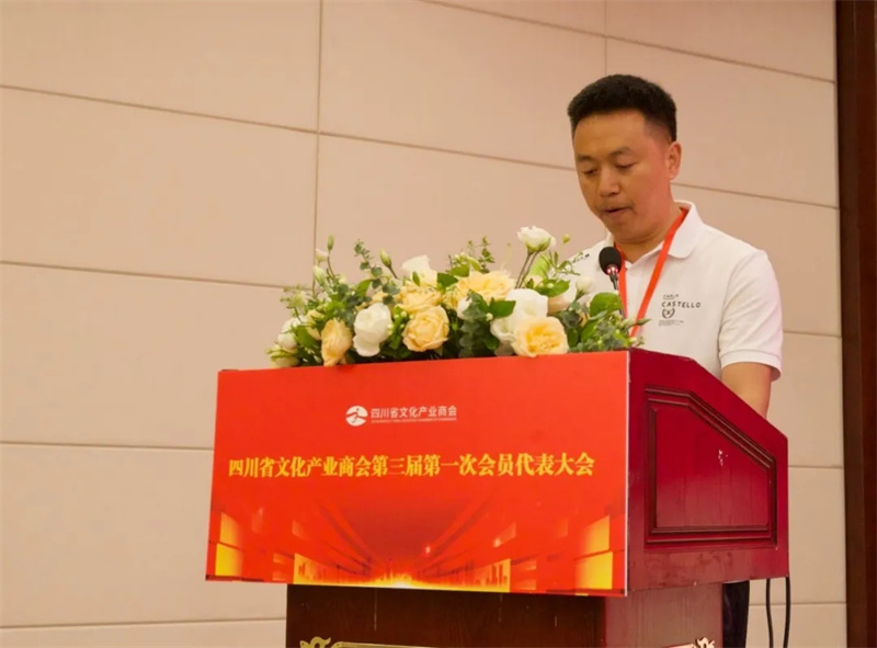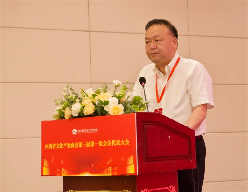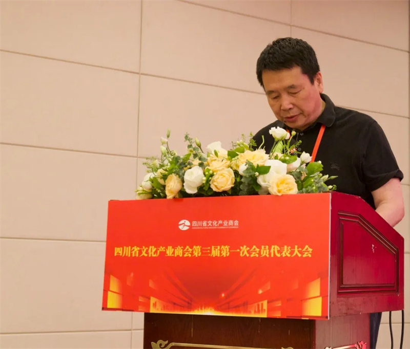 新当选的第三届会长张建华在致辞中说:“感谢省工商联,以及省委宣传部、省文旅厅、省民政厅等行业主管部门对四川省文化产业商会一直以来的关心和支持,感谢商会的会员企业家们对我的信任和鼓励。”张建华认为,作为文化人,要为人类文明创造价值;作为经营者,要为美好生活创造财富;作为社会组织要为时代前行肩负使命。面向未来,商会将更加积极地发挥桥梁纽带的连接作用,更加主动地发挥建圈强链的聚合作用,更加长远更具大局观的去谋划四川省文化产业商会的未来发展,与全体会员一道去追逐时代之光、理想之光,也要努力让自己成为骄傲的发光体,去照亮身边的人,照亮前行的路。最后,在《国际歌》歌声中,四川省文化产业商会第三届第一次会员代表大会胜利闭幕。