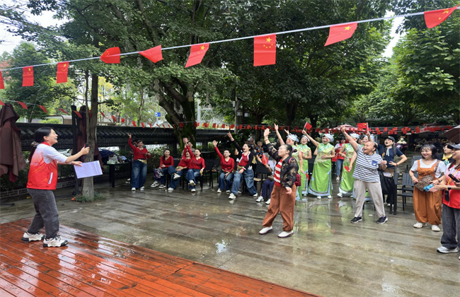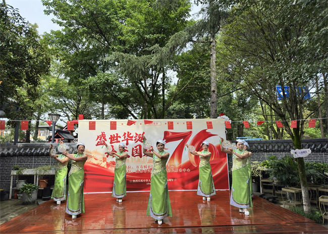 金秋送爽,丹桂飘香。在国庆佳节来临之际,为庆祝中华人民共和国成立76周年,弘扬爱国主义精神,丰富社区居民的精神文化生活,成都市武侯区机投桥街道万寿桥社区于9月28日精心组织了一场以“盛世华诞 共庆国庆”为主题的精彩文艺活动。尽管活动当天下着小雨,但居民们热情丝毫不减,纷纷来到活动现场,共同沉浸在这场充满爱国情怀的视听盛宴中。