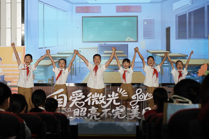 在都江堰外国语实验学校学术报告厅内,团结小学原创心理剧《最胖的,最棒的》和都江堰市外国语实验学校《一点点不完美》接连上演,以校园生活为蓝本,演绎青少年突破自我、接纳不完美的成长故事,引发观众强烈共鸣。