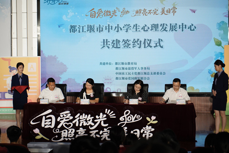 活动现场,都江堰市教育局、市退役军人事务局联合中国农工民主党都江堰总支部委员会、市爱国拥军联合会签署《都江堰市中小学生心理发展中心共建协议》,标志着全市未成年人心理健康服务三级网络建设进入实质性推进阶段。