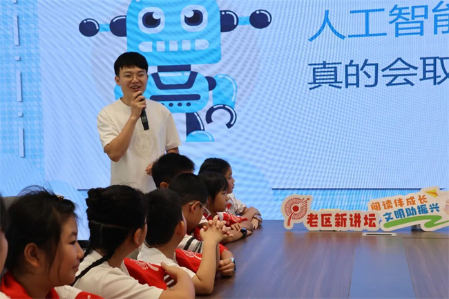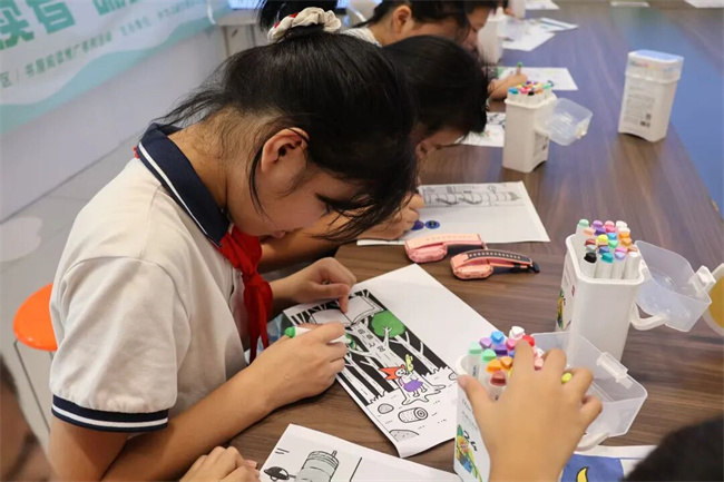 随后,中国作家协会会员、科普作家何明瀚老师带来了一场关于人工智能的趣味科普。“AI会不会代替人类呀?”一个问题瞬间点燃全场。孩子们争相举手,畅想起机器人种地、洗碗、写作业的奇妙场景,科技梦想在这一刻悄悄发芽。创意彩绘环节把活动推向另一个高潮。孩子们变身“小小创客”,用画笔描绘心中的未来世界:有的画下与宇航员握手,有的想象乘坐飞碟穿越星际,还有的让书本长出了翅膀……天马行空的画面,承载的是他们对科技与未来的美好期待。