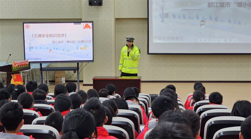 交通文明的树立离不开教育与宣传。塔子坝中学将交通文明知识纳入教育体系,从小培养学生的规则意识和安全意识。以“堰小明”活动为契机,2024年12月11日,邀请交警大队民警周同超和辅警杨颖浩走进学校开展了“交通安全进校园 守护平安成长路”主题交通安全知识宣传教育活动。通过生动的课堂讲解、实地演练等方式,让交通文明的种子在孩子们心中生根发芽。