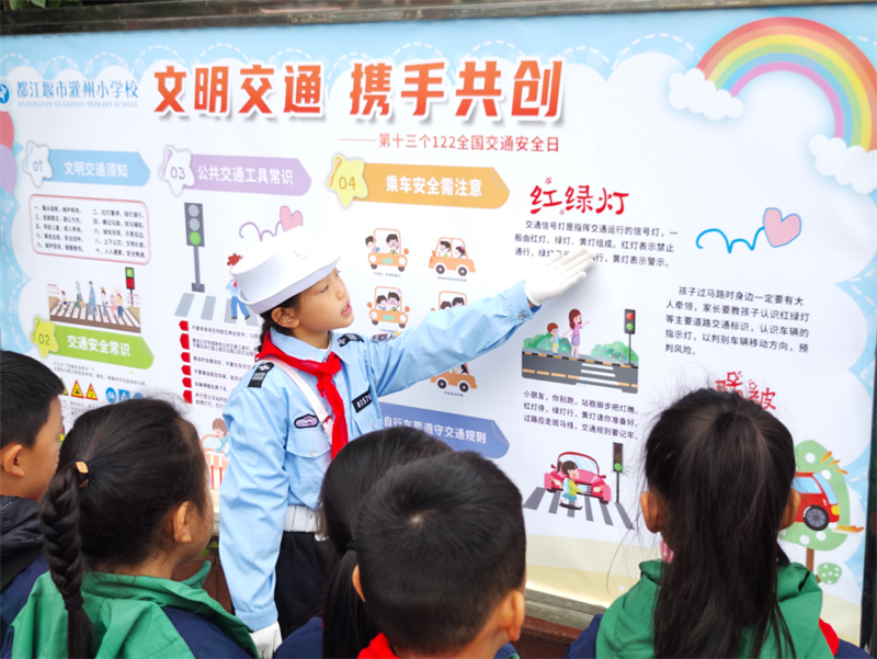 2024年12月,都江堰市李冰小学围绕“文明交通·携手共创”开展“堰小明”交通安全教育系列活动,以学习交通安全知识、增强交通安全意识为目的,积极促进学生学习掌握安全知识的兴趣和意愿。活动中,“堰小明”学生志愿者和五年级部分学生升旗仪式上表演了交通安全专题节目《消失的信号》,向全校学生强调了日常生活中信号灯和信号标志的重要性。都江堰市公安局交警大队洪警官专程到校,针对李冰小学周边交通实际情况进行了安全教育。全校各班级也利用班会课等形式开展了“文明交通·携手共创”的主题活动,一起制作了交通安全知识小报,在提高动手能力的同时,将交通安全知识牢记于心。