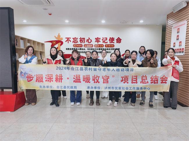 为系统总结服务经验,表扬先进典范,在合江县民政局的悉心指导下,2025年12月11日,泸州市优家社会工作服务中心成功举办了“步履深耕·温暖收官”项目总结会。会议汇聚项目各方代表及志愿者30余人,共同回顾一年来的服务历程,为农村留守老年人关爱服务的持续深化注入新动力。