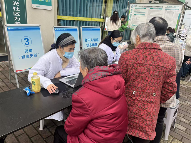 宣传动员多措并举、全面覆盖。医院通过微信公众号发布公告,在小区、村落公告栏张贴通知,并依托家庭医生社群推送体检时间、地点及注意事项。针对留守、独居老人等不便使用智能手机的群体,家庭医生逐一电话通知、上门提醒,确保每位符合条件的老人应知尽知、应检尽检。