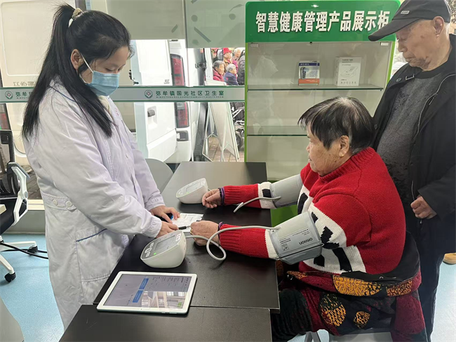 上门关怀,特殊群体健康有保障。除了常规的体检服务,弥牟镇公立中心卫生院同样关注失能老人及残疾人,针对行动不便无法到现场体检的人群,家庭医生组成上门服务小组,背着医疗箱走村入户,完成床旁体检。家住狮子村的张大爷患有糖尿病、高血压多年,还有肢体残疾,无法出门。家庭医生陈黎得知情况后,带着设备上门为他服务。不仅完成了血压、血糖检测,还细心地发现了他脚踝处的溃疡。陈黎医生及时联动医联体的专家,制定科学合理的治疗方案,并坚持每天上门换药,直到老人的伤口痊愈。在弥牟镇的乡村里,这样的暖心故事并不少见。卫生院构建起“基层首诊—多学科会诊—上下联动—全程管理”的闭环服务模式,让失能、慢病老人无需奔波医院,在家门口就能享受到专业的健康照护。