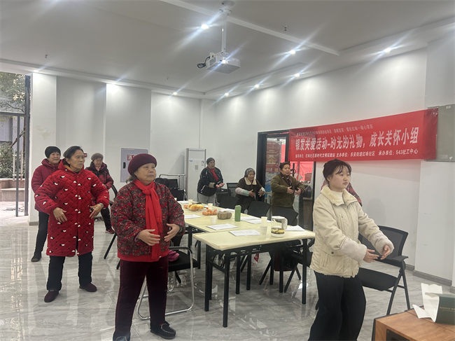 从第三期开始,系列活动转型为“时光的礼物,成长关怀小组”,通过多元化的活动形式,为老年朋友们搭建了一个交流互动、学习成长的温馨平台。小组活动中,老人们不仅参与了八段锦热身运动、唱红歌等集体活动,还通过自我介绍、智能机教学、新春小手工等环节,增进了彼此之间的了解与友谊。每期活动都围绕不同的主题展开,如“认识自我”“唤醒记忆·分享荣光”“计划时光·未来的我”等,引导老人们深入探索自我、回顾人生历程、展望美好未来。