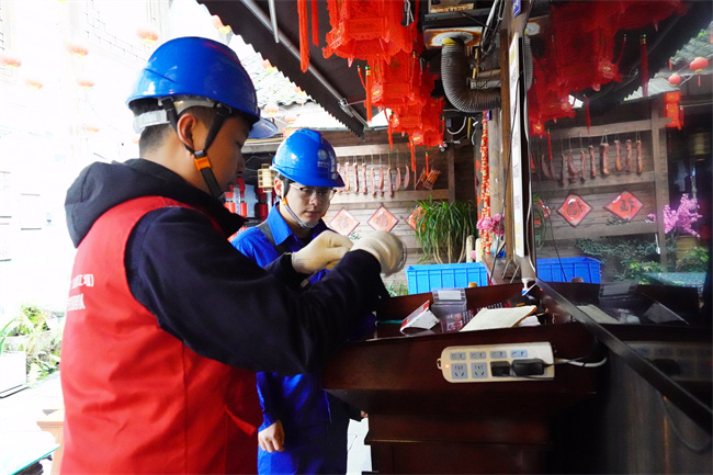 “结对子”排查隐患,共建平安“一张网”。活动不仅停留于表面的宣传,更注重深度的治理融合。宣讲结束后,由国网都江堰市供电公司、都江堰天然气公司技术人员以及社区网格员组成的“联合安全服务小组”,深入都江堰核心景区文化西街沿线的商户、精品民宿和老旧院落等风险区域,利用测温仪对用电设备和线路开展拉网式隐患排查。