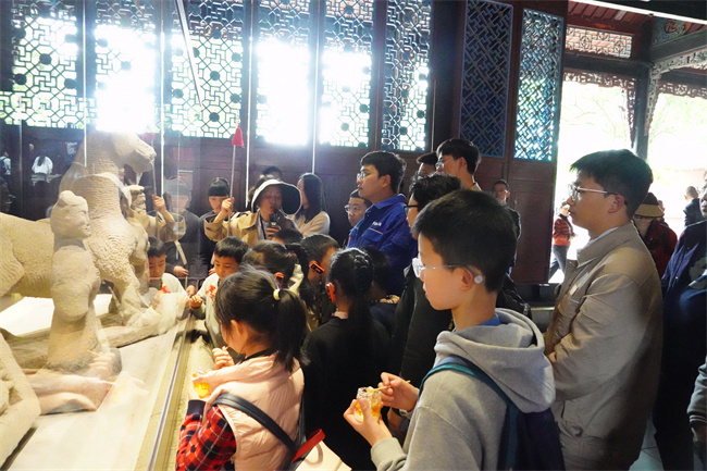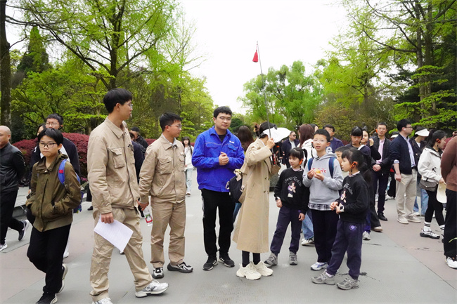 研学之旅中最吸引孩子们的,当数一场“边走边学”的沉浸式研学课堂。走进景区,公司青年志愿者们带领研学队伍沿着堰工大道缓缓前行,一路讲述着都江堰水利工程的千年传奇。在伏龙观前,志愿者周惠虎将都江堰渠首三大工程——鱼嘴、飞沙堰、宝瓶口的精妙设计娓娓道来。孩子们听得入神,不时发出惊叹。而在讲解间隙,还巧妙穿插安全知识,“宝瓶口控制着进入成都平原的水量,就像我们家里的漏电保护器,关键时刻能起到‘把关’作用。所以大家要记住,家里的漏电保护器一定要定期检查哦”。