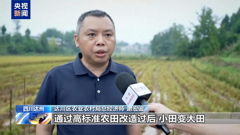 达川区农业农村局总经济师 谢宏波:通过高标准农田改造后,小田变成大田。现在能排能灌,一年可以种两季,机械化作业程度非常高,两季都能够获得丰收。水稻的单季产量相比以前,每亩至少增收30公斤以上。