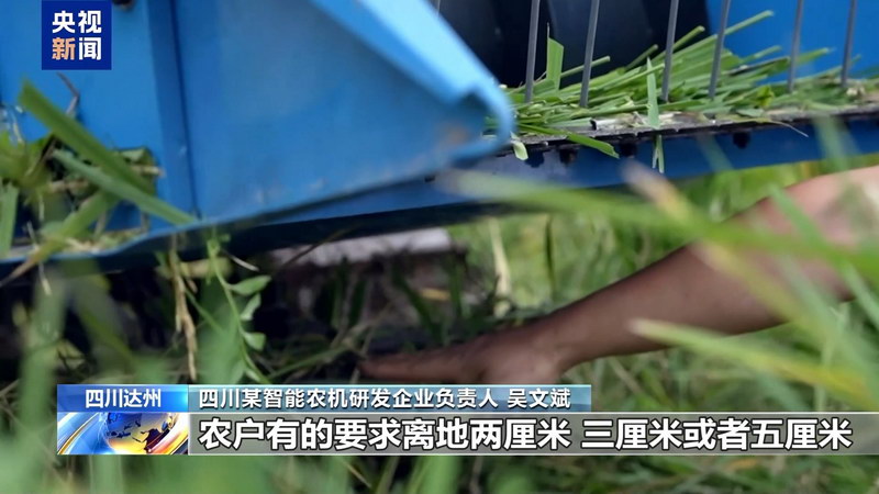 四川某智能农机研发企业负责人 吴文斌:我们这个收割机刀分两把,农户的要求不同,有的要求离地两厘米、三厘米或者五厘米,都可以进行调整。我们的小型机器是丘陵山区的专用。