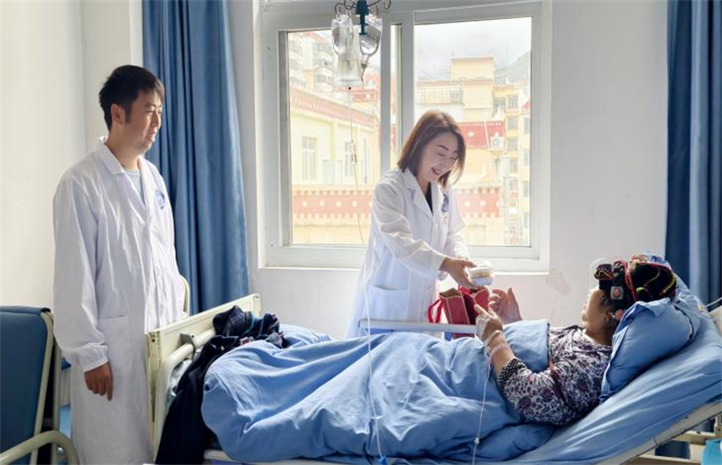 “您好,这是医院准备的中秋月饼,祝您节日安康!愿这份心意让您感受团圆温暖,也愿咱们像石榴籽一样紧紧相依!”小金县中藏医院医护人员带着包装精美的月饼,逐一向住院患者送上祝福,话语间传递着 “石榴籽民生工程” 倡导的团结关怀。接过月饼的患者及家属满是惊喜感动,患者纷纷致谢。一位住院老人感慨:“本担心住院不能和家人团圆,没想到医院这么贴心,这月饼甜到心里,更让我们觉得各民族就像一家人!”此次中秋送关怀活动,虽以“小月饼”为载体,却承载着医院对患者的深切关怀,更践行了“石榴籽民生工程”“以民生服务聚民心、以民族团结促和谐”的理念。此次暖心行动,正是全系统践行“以人民健康为中心”理念、推进“石榴籽民生工程”的生动缩影。
