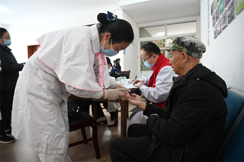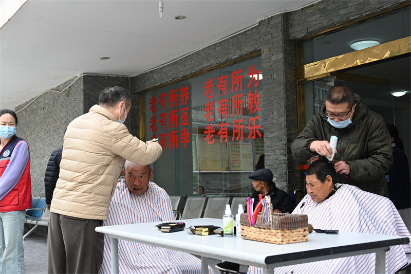尽管窗外晨雾朦胧,寒意袭人,养护院内却暖意融融。县疾控中心、人民医院和社区卫生院的医护人员早已准备就绪,耐心细致地为老人们进行健康体检和疫苗接种咨询。在另一侧的义剪区,蔓都造型工作室的志愿者们手法娴熟地为老人修剪头发,细致周到的服务让老人们倍感温暖。