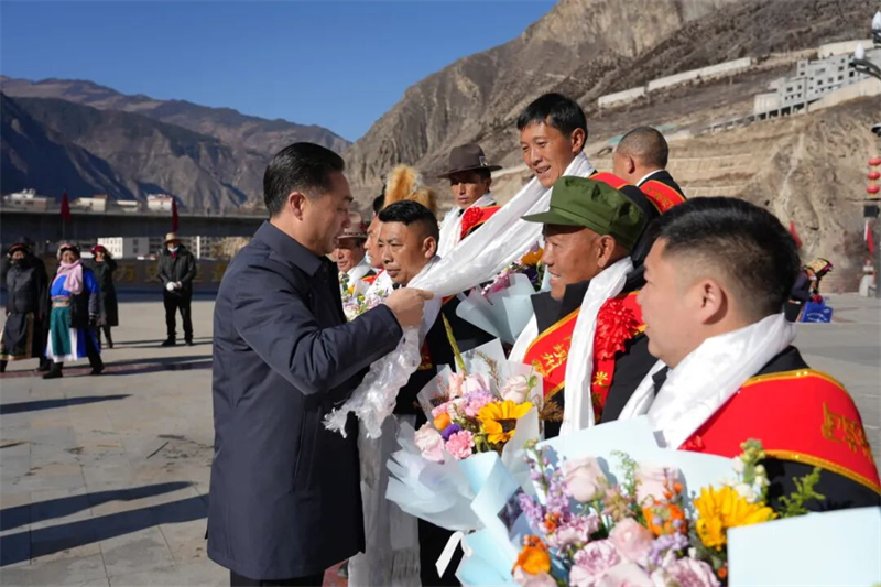 1月6日上午,在小金县会师广场,15名受激励代表载誉归来,脸上洋溢着幸福的笑容。县委副书记、县长刘明刚向受激励家庭代表表示热烈祝贺。刘明刚指出,这份荣誉的取得,离不开“石榴籽”工程的深入实施,更凝聚着广大干部群众和“四好”农牧民家庭的共同努力。希望全县上下以受激励家庭为榜样,学习他们团结互助的情怀、爱国守法的信念、重教劝学的眼光和勤劳致富的精神,让“四好”品质融入日常。