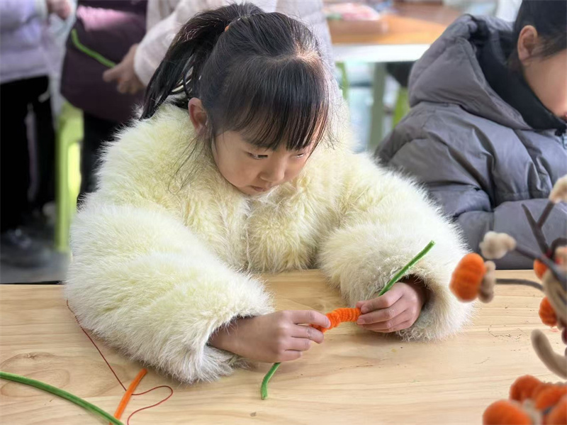 文化传承润童心,民族团结结硕果。非遗传承方面,“羌韵童行・非遗寻根”活动通过文化讲解与手工体验,让孩子们了解羌绣、羌年习俗等非遗元素,亲手尝试羌绣针法、学唱羌族歌谣,增强文化认同。传统节庆文化课程同样精彩,“溯春节之源・品传统雅韵”科普课带孩子们探寻春节习俗由来,“墨韵童心贺新春”活动中,孩子们在书法老师指导下书写春联与“福”字,寄托新年期盼。“吉柿迎春・童韵传情”主题活动中,孩子们了解柿子“吉祥如意”的寓意,用扭扭棒制作“福柿”并分享祝福,让传统文化在指尖传递。