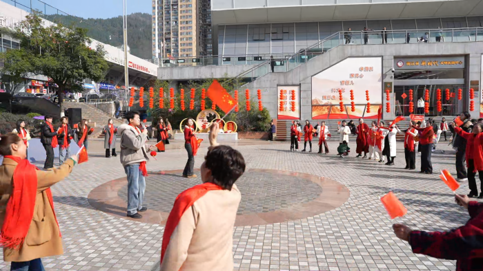 活动在热烈的快闪表演中拉开序幕。30多名表演者互动式演绎了《恭喜发财》《歌唱祖国》等歌曲,瞬间点燃现场氛围。