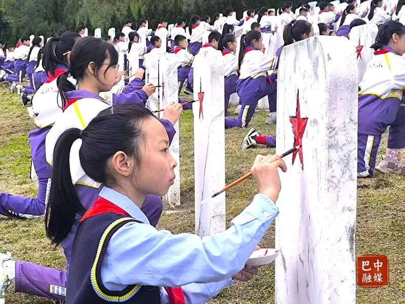 在无名烈士纪念园,大家手持毛笔,小心翼翼为墓碑上的五角星描红,一笔一画间,将英烈精神深深刻进心底。通江县实验小学学生陈星桥,握着毛笔的手有些微微颤抖,他认真地描摹着每一笔,生怕惊扰了长眠的先烈:“这些无名烈士没有留下名字,却为我们留下了幸福的生活,我要把五角星描得更红,让他们知道,我们没有忘记他们。我要珍惜当下、刻苦学习,立志成长为对祖国、对人民有用的人,不负先烈,不负时代。”