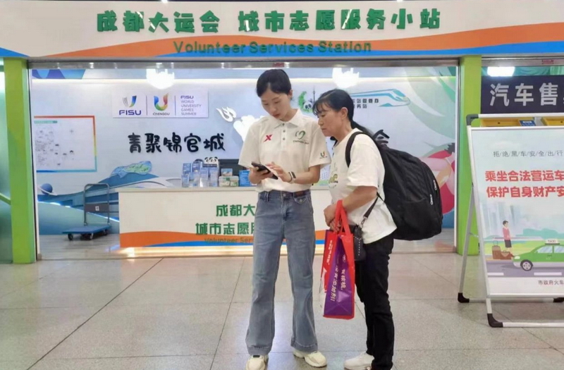 “过往的游客很多,大多是询问乘车线路,我们拿着提前准备的旅游地图和宣传册为他们指引。”志愿者杨俊介绍,成都东站是很多朋友来蓉的“第一站”,因此除了做好赛事咨询服务以外,他们还要提供相应的文旅服务,吃、住、行、游、购、娱全都“包打听”。