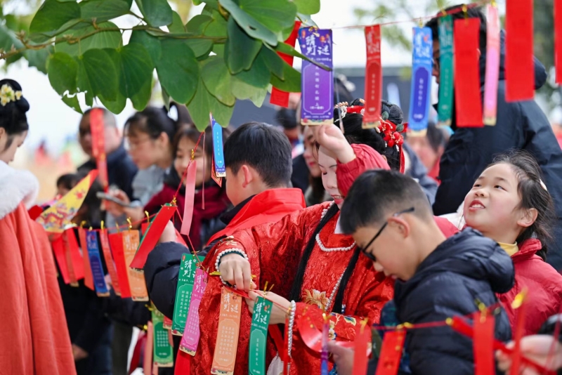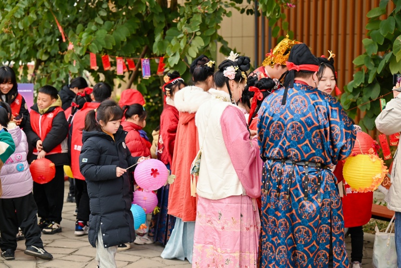 汉服巡游也是现场的一大亮点。大家身着流光溢彩、图案精致的汉服,为现场增添了一抹浓厚的古风韵味。市民们驻足观看,拍照留念,记录下这美好的时刻。