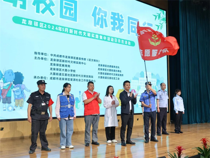 龙泉驿区文明实践集中活动日示范活动来到大面小学。活动以“文明校园 你我同行”为主题,通过文明宣言、心理健康宣讲、文明游园等形式,引导同学们提升文明素养,共建文明校园。活动现场,学生代表发出“传承礼仪之风 浸润文明校园”的文明校园倡议,大面街道“护苗”志愿服务队成立。