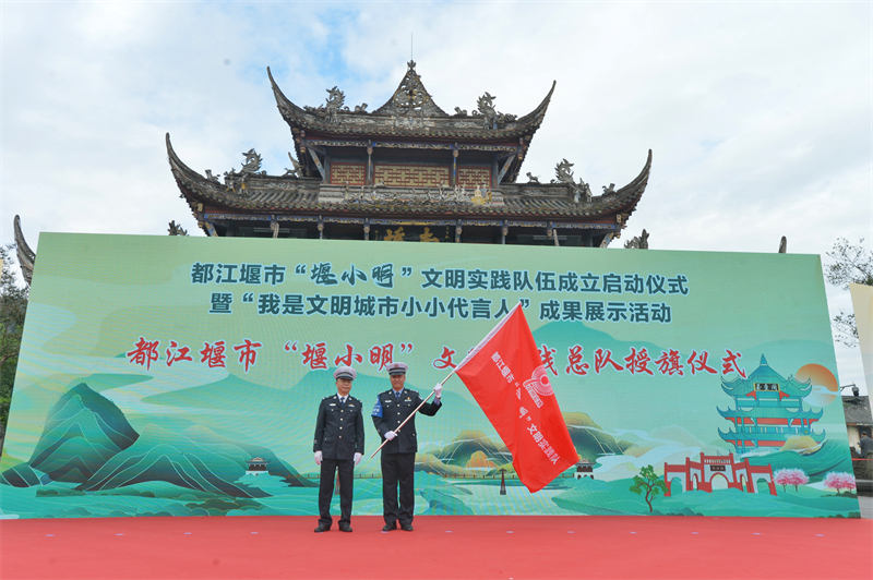 活动现场,成都市文明办相关领导宣布都江堰市“堰小明”文明实践总队成立,成都市公安局交通管理局相关领导为总队授旗。都江堰市委宣传部(市文明办)、市公安局、市教育局携手四川省都江堰中学、都江堰外国语实验学校、都江堰市北街小学等15所中小学,成立都江堰市“堰小明”文明实践支队,通过一系列丰富多彩的文明实践活动,带领市民和游客一起参与文明交通,感受这座“三遗之城”的城市温度。