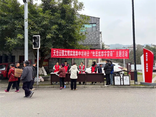四川文明网成都讯(邛崃市文明办)弘扬雷锋精神,共筑文明新风。3月8日上午,邛崃市天台山镇新时代文明实践所在文化广场组织开展“文明实践集中活动日——我在成都学雷锋”主题活动。活动现场,“我在成都学雷锋”的红色横幅格外醒目,志愿者通过讲解和互动服务,为居民送上实用知识。