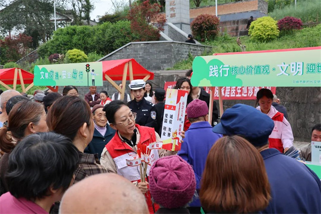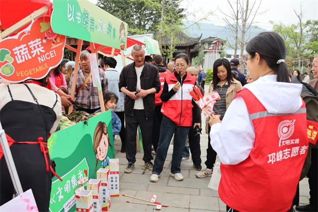 活动设置文明旅游、垃圾分类、文明答题、以书换蔬、义诊义剪、婚俗问答、文明交通七大特色展位。