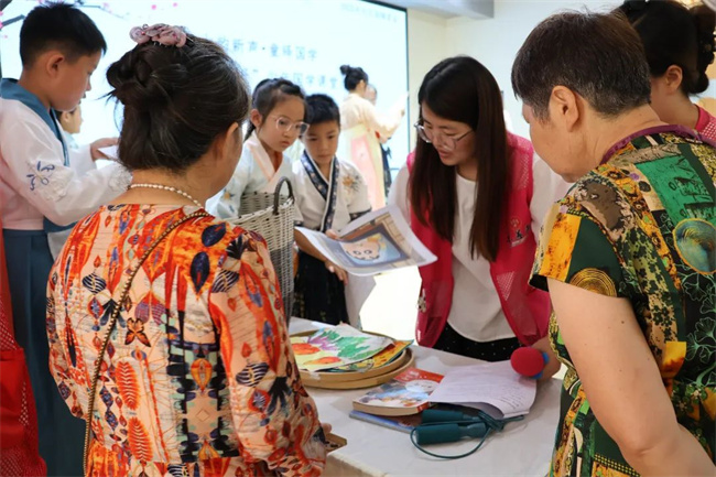亲子共学共演,文化传承“双向奔赴”。家长志愿者们不仅是后勤保障,更成为“共学共悟”的关键角色。“讨论剧本时,孩子主动问我‘言而有信’的含义,这种亲子互动胜过千次说教。”一位母亲感慨道。特别让家长惊喜的是,一些平时内向的孩子在活动中也勇敢地站上舞台表现自己。