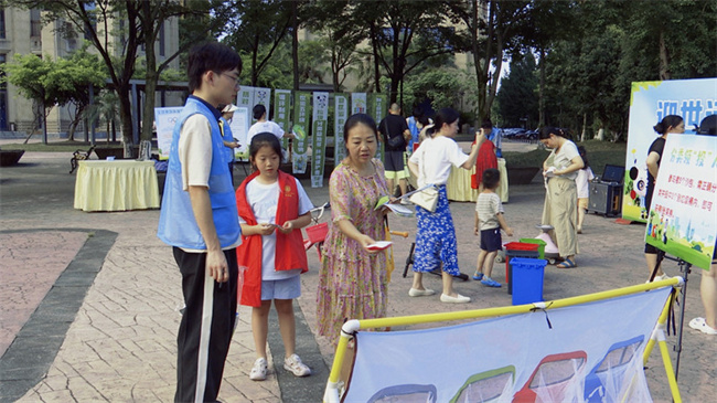 现场,主办方在知识宣传区设置了“世运垃圾大揭秘”展板,详细展示赛事常见废弃物(如饮料瓶、食品包装)的分类方法。同时,志愿者通过摆放垃圾分类宣传展板和发放宣传资料,向市民详细讲解垃圾分类政策、分类标准及分类的意义,进一步增强大家对垃圾分类的认知。