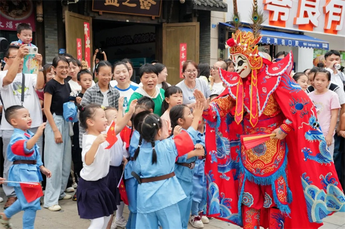 下午两点,活动在藏族舞《吉祥》的欢快节奏中拉开帷幕。随后,幼儿园的小朋友们相继带来舞蹈《祖国未来》和《红星闪闪》,用童真诠释着对祖国的热爱与传承的希望。非遗川剧变脸更是将演出推向高潮,表演者走入人群与孩子们近距离互动,引得阵阵掌声与欢呼。