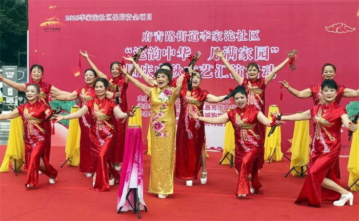 府青路街道李家沱社区邀请居民齐聚一堂,共赏佳节文艺汇演。活动在热闹的舞龙表演中拉开帷幕,民族舞蹈、四川清音、太极功夫扇等节目轮番登场,尽显文化魅力;现场还穿插防诈骗宣传与月饼分享环节,兼顾实用与趣味。居民沉浸其中,掌声与喝彩声此起彼伏,一派欢乐祥和的节日景象。