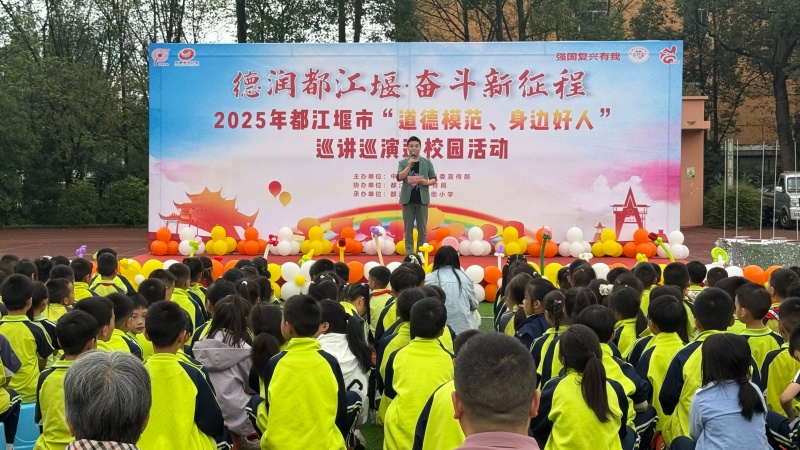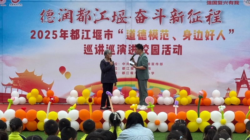 四川文明网成都讯(都江堰市文明办)德润都江堰,奋斗新征程。10月11日下午,由都江堰市委宣传部主办的“德润都江堰·奋斗新征程——2025年都江堰市道德模范、身边好人事迹巡讲巡演进校园”活动在柳街小学举行。活动通过事迹宣讲、现场访谈、文艺演出与互动问答相结合的方式,为学校师生送去精神与艺术交融的文明盛宴。