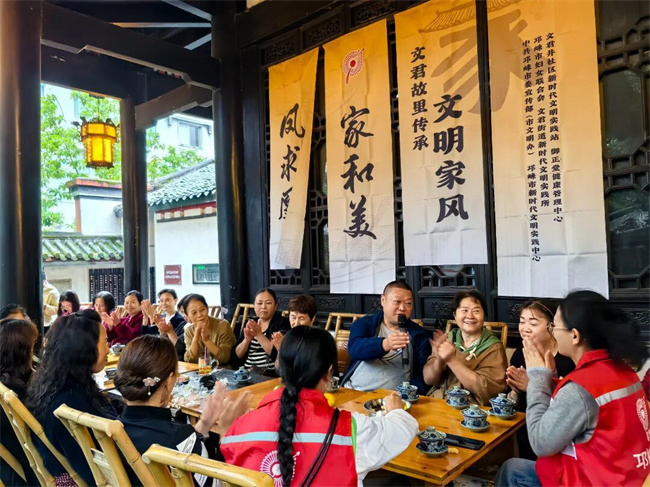 四川文明网成都讯(邛崃市文明办)秋雨润古井,琴韵绕朱门。10月17日,邛崃文君井内茶香氤氲,中共邛崃市委宣传部(市文明办)、邛崃市新时代文明实践中心、邛崃市妇女联合会、文君街道新时代文明实践所、文君街道文君井社区新时代文明实践站、御正堂健康管理中心等单位联合开展“凤求凰·家和美——文君故里传承文明家风”主题文明实践活动,30余位市民齐聚千年琴台畔品茗聆韵,沉浸式体验传统文化之美,传递新时代家庭文明新风尚。