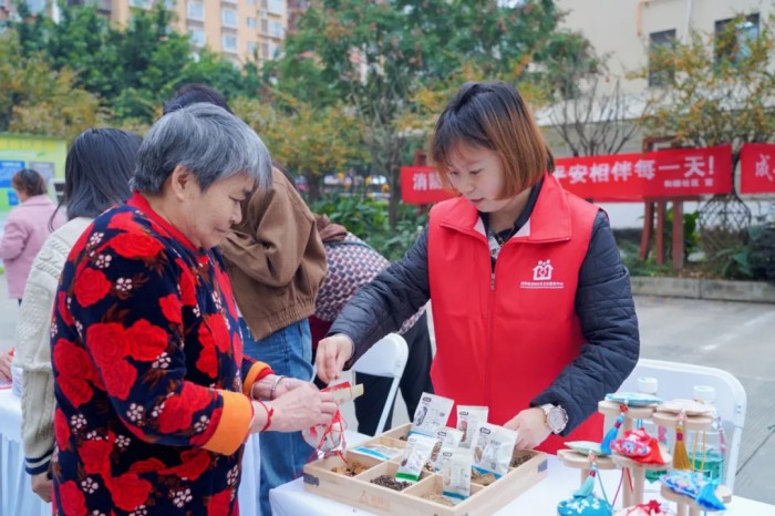 健康宣教区同样排起了队,医师们忙着为居民测量体脂、进行心理测评,引来不少叔叔阿姨踊跃参与。一旁的中医药文化体验区则飘着淡淡药香,大家在专业人员指导下亲手制作香囊,感受传统中医药文化的魅力。