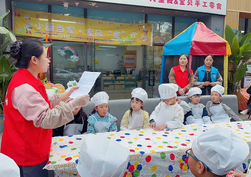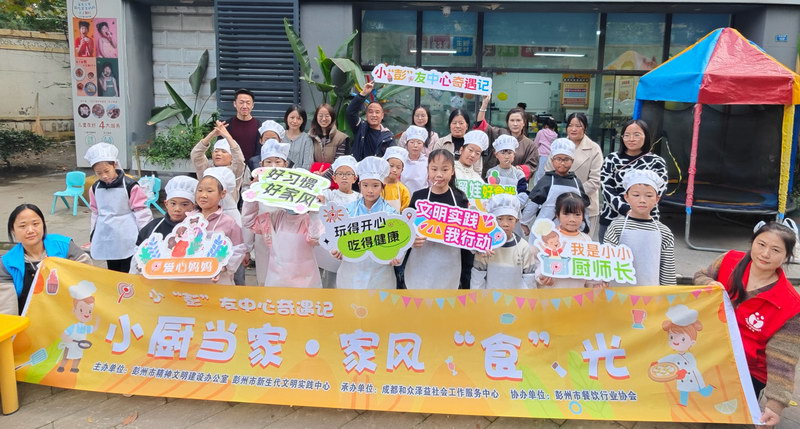 四川文明网成都讯(彭州市文明办)11月9日下午,由中共彭州市委宣传部(市文明办)、彭州市妇联主办,和众泽益、仁爱社工承办的“小厨当家·家风‘食’光”文明实践活动开展。本次活动以“世界儿童日”为契机,聚焦关心关爱儿童与困难群体,以食物为情感纽带,将食育与家风建设深度融合,在动手实践中传承家风,在亲子协作中收获成长,吸引了20余组亲子家庭积极参与。