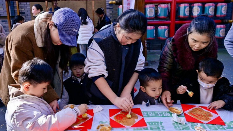 捏面人摊位非常受亲子家庭欢迎。市民李蕊带着女儿刚完成一只小兔子面塑:“孩子玩得开心,还了解了非遗知识。这种活动比单纯说教更有感染力!”