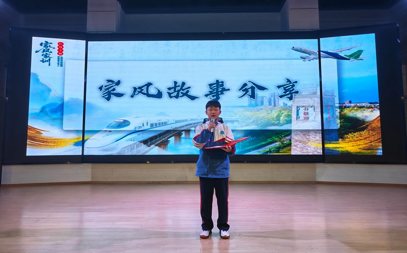 在分享交流环节,现场氛围真挚而热烈。木兰中学优秀“家风建设”代表张智杰以“家风伴我成长,校训育我成才”为题,娓娓道来家风与校训交织下的成长心路;石板滩中学优秀志愿代表付馨雨结合自身家风故事,深刻诠释了志愿精神的内核;木兰小学优秀志愿代表曾家逸分享了在志愿服务中的收获与感悟,传递出小小志愿者的责任与担当;石板滩小学李皓然讲述了《妈妈的暖汤》背后的家风传承故事,质朴的言语、真挚的情感引发全场强烈共鸣。