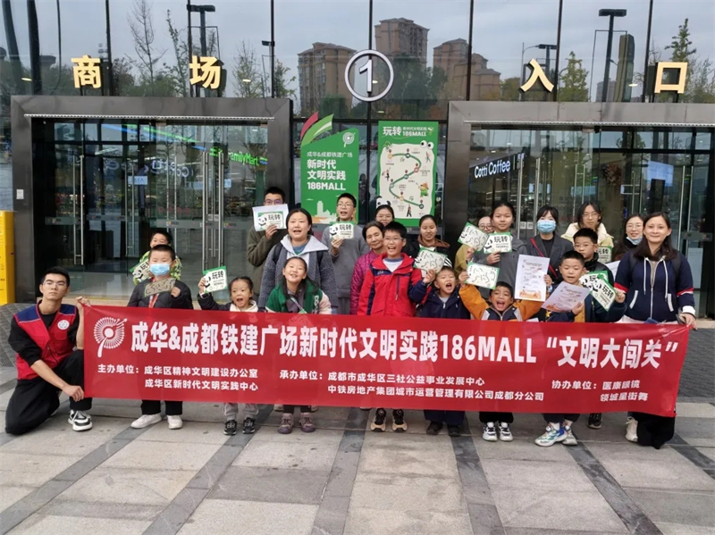 “哇!我是第56016名‘文明代言人’耶!”11月12日秋假首日,成华&成都铁建广场新时代文明实践186MALL内洋溢着孩子们的欢声笑语。由成华区精神文明建设办公室、成华区新时代文明实践中心主办,中铁房地产集团城市运营管理有限公司成都分公司承办的“文明大闯关”实践活动在此热闹举行。25组亲子家庭在商业空间里沉浸式挑战各项趣味任务,共同开启了一场别开生面的文明之旅。
